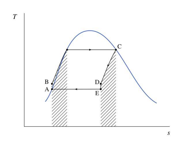 Keywords: Temperature-entropy chart of a regenerative Rankine cycle.svg en Temperature-entropy chart of a conceptual Rankine cycle with regeneration one in which heat from the turbine is used to pre-heat the water before insertion in the boiler In the limit of zero-gradient heat exchange this can produce a fully-reversible engine with maximum thermal efficiency 2014 own Olivier Cleynen other versions cc-zero Temperature-entropy diagrams Rankine cycle Uploaded with UploadWizard |