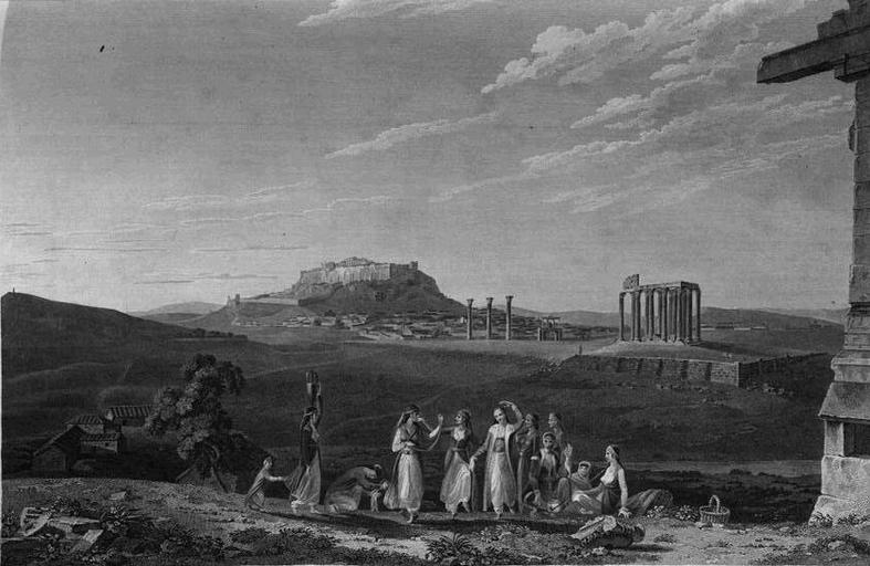 | Keywords: Temple of Jupiter Olympius - by James Athenian Stuart.JPG en Temple_of_Jupiter_Olympius Το ίο με τον ναό του Ολυμ ίου Διός ό ως τον είδε ο Στιούαρτ α ό τον Ιονικό ναό του Ιλισού στην νοτιοανατολική λευρά της Ακρό ολης Στο βάθος βλέ ουμε το βουνό ου στην αρχαιότητα ονομάζονταν Κορυδαλλός και σήμερα λέγεται Δάφνη Στο κέντρο της εικόνας δεσ όζει ο ιερός βράχος της Ακρό ολης Πιο χαμηλά εικονίζονται μερικές χριστιανικές εκκλησίες ενώ δεν φαίνεται κανένα τζαμί Ο ναός του Ολυμ ίου Διός είναι το σημαντικότερο μνημείο της εριοχής Στα δυτικά βλέ ουμε το θέατρο του Διονύσου ενώ ο Ιλισός κυλάει ξερός εκτός α ό την βροχερή ε οχή ια συντροφιά νεαρές κο έλες έβγαλαν τον φερετζέ ε ειδή βρίσκονται μακρυά α ό τα βλέμματα των ανδρών Τρεις χορεύουν έναν συρτό χορό ου συνηθίζεται στην Αθήνα Αυτή ου σέρνει το χορό κρατάει μαντήλι στο χέρι και υ οδύεται την Αριάδνη http //www sil si edu/PAID/fullsize/39088003519535/39088003519535_0131 jpg Creator James Stuart 1762 PD-old-100 James Stuart 1713-1788 Engraving of Athens 1762 Historical images of Greece Athens |