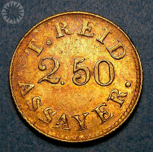 | Keywords: legendary coins legendarycoins numismatics money smithsonian probably public domain probablypublicdomain round circle ancient indoor SI Neg. 2005-27319. Date: 9/1/2005...Before the famous California gold rush, several important strikes were made in the East: in North Carolina, South Carolina, and Georgia. The earliest took place in Mecklenburg County, N.C., in 1799, where a nugget weighing several pounds was discovered. Its finder used it as a doorstop until someone recognized it for what it was! Discoveries multiplied, and a federal branch Mint was eventually set up in Charlotte to process the metal into coinage. .Discoveries in Georgia and North Carolina in the 1820s received wide publicity, and a "gold fever" resulted. Thousands of people began trekking to the areas in search of instant wealth. Most returned home empty-handed, but successful prospectors found millions of dollars' worth of precious metal. What should they do with their new wealth? Many felt the Philadelphia Mint was too far away for safe travel, and the government wasn't ready to create other coining facilities. .A jack-of-all-trades named Templeton Reid had an answer: strike private gold coins, at a private mint. Reid had extensive experience as a watchmaker, gunsmith, and metalworker. In July 1830, he set up shop in the Georgia hamlet of Milledgeville, and began his brief career as private moneyer-the first since Ephraim Brasher. .Reid struck about a thousand of the $2.50 denomination. As with the larger $10 and $5 dollar denominations, most were later melted down and re-coined by the U.S. Mint. We can trace fewer than twenty-five survivors, including this one..Click here to view the obverse...Credit: Tom Mulvaney (Smithsonian Institution) SI Neg. 2005-27319. Date: 9/1/2005...Before the famous California gold rush, several important strikes were made in the East: in North Carolina, South Carolina, and Georgia. The earliest took place in Mecklenburg County, N.C., in 1799, where a nugget weighing several pounds was discovered. Its finder used it as a doorstop until someone recognized it for what it was! Discoveries multiplied, and a federal branch Mint was eventually set up in Charlotte to process the metal into coinage. .Discoveries in Georgia and North Carolina in the 1820s received wide publicity, and a "gold fever" resulted. Thousands of people began trekking to the areas in search of instant wealth. Most returned home empty-handed, but successful prospectors found millions of dollars' worth of precious metal. What should they do with their new wealth? Many felt the Philadelphia Mint was too far away for safe travel, and the government wasn't ready to create other coining facilities. .A jack-of-all-trades named Templeton Reid had an answer: strike private gold coins, at a private mint. Reid had extensive experience as a watchmaker, gunsmith, and metalworker. In July 1830, he set up shop in the Georgia hamlet of Milledgeville, and began his brief career as private moneyer-the first since Ephraim Brasher. .Reid struck about a thousand of the $2.50 denomination. As with the larger $10 and $5 dollar denominations, most were later melted down and re-coined by the U.S. Mint. We can trace fewer than twenty-five survivors, including this one..Click here to view the obverse...Credit: Tom Mulvaney (Smithsonian Institution) |