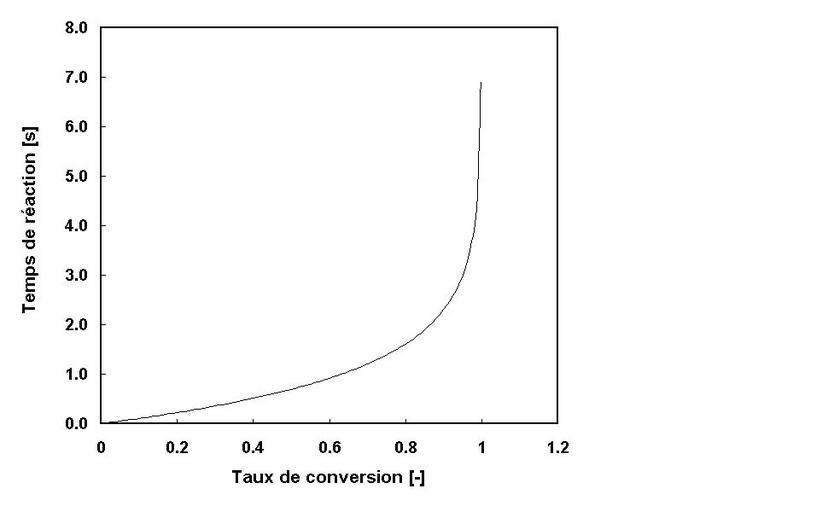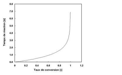 | Keywords: TempsReaction vs TauxConversion.jpeg This figure shows how the reaction time changes with conversion rate in a batch reactor for a reaction of first order kinetic constant and initial concentration were taken equal to 1 Axes legends are in french Own 2006-12-26 Jonas Schenk User BacillusHelveticus all rights released Public Domain Chemical kinetics |