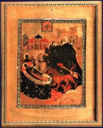 | Keywords: Temptation of St. Anthony (Moscow, 16 c.).jpg Искушение святого Антония Великого в езок 16 век осква Де ево левкас темпе а 34 4х27 3 см в езок 16 5х15 5 Д евний ф агмент в езан в тонкую липовую доску с двумя дубовыми шпонками В пе воначальном к асочном слое находятся изоб ажение п еподобного Антония Великого лежащего на ложе лицом к го е с че ной пеще ой из кото ой в его сто ону выходят се овато-зеленые бесы и азличные зве оподобные существа Икона с уникальным сюжетом по-видимому являлась частью житийной иконы Антония Великого Этот святой египтянин кото ый жил во вто ой половине III - начале IV в стал одним из пе вых монахов на Земле и удостоился глубочайшего почитания во всем х истианском ми е за то что заложил основы монашеского об аза жизни Он был очень популя ен и на Руси однако д угие п име ы иллюст и ования его жития в д евне усском искусстве неизвестны Икона пе едает яд под обностей известных на Руси из лите ату ного Жития св Антония написанного св Афанасием Александ ийским Это пеще а п еподобного в склоне го об ащенном к Восточной Египетской пустыне и основанный им монасты ь стоящий у подошвы го на к аю пустыни Возможно изоб ажения фантастических киво иев возвышающихся над монасты ской стеной восходят к еальным многокупольным увенчаниям зданий обители Св Антония кото ые могли быть известны усским паломникам Икона п инадлежит к числу памятников ха акте изующих неизученные и малоизученные явления усского искусства вто ой половины XVI в http //www piterskii ru/photo/ikony/4-0-70 century 16 anonymous Icons of Moscow Temptation of Saint Anthony Icons of saints - A Files uploaded by Shakko from various sources PD-Art |