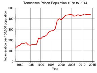 | Keywords: Tennessee Prison Population.svg en Tennessee prison incarceration rate per 100 000 population from 1978 to 2014 Data from http //www bjs gov/index cfm ty nps BJS 2016-05-11 own Delphi234 other versions current annually Generated with Wikimedia SVG Chart SVG Chart/box cc-zero Prisons in Tennessee Imprisonment and detention rates in the United States |