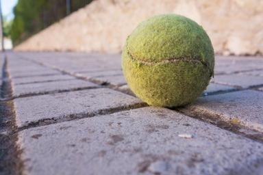 Keywords: tennis ball sidewalk soil game tennis ball