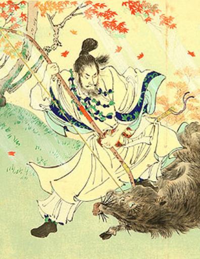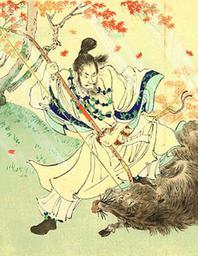 | Keywords: Tennō Yūryaku detail.jpg en Detail from Emperor and Boar by Ginko Adachi Woodblock print depicting a hunting scene where Emperor Yūryaku later half 5th century overpowers a large wild boar at Mount Katuragi in 461 AD http //www artelino com/archive/archivesearch_show asp act go ars 0 cay 1 date_yyyy 0 exc evt 425 pp 24 pp1 1 ped 0 rp 237 rp1 1 rp2 237 lvl 2 sea emperor sor itm_artist_id 20DESC 20itm_item_id 20DESC sou itemarchivem suy 0 sut 0 tee 0 artelino - Japanese Prints - Archive 29th May 2009 Ginko Adachi active 1874-1897 1896 70px Emperor Yūryaku Boar hunting in art Sus scrofa leucomystax PD-old |