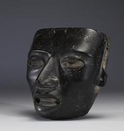 | Keywords: Teotihuacán - Face Plaque - Walters 296 - Three Quarter Left.jpg This black limestone mask was carved by artists of the Teotihuacan culture centered at the ruined city of the same name in central Mexico Ancient Teotihuacanos fashioned masks in many mediums and at various scales from miniature ceramic works to over life-sized stone versions such as the present example Although this mask was hollowed out on the back the eyes were not prepared for viewing Instead they were partly drilled and originally inlaid with some kind of contrastive medium like shell obsidian magnetite or pyrite The fact that one cannot see through the eyes has led researchers to propose that masks like this were not worn as costume elements by the living Instead most writers believe that they were likely tied to mummy bundles or deity effigies The four drill holes found on this mask at each temple and below the ears were used to affix it to such a bundle The ear-like flanges are also drilled and would have originally had earrings pendant Along with feathers and beads masks were one of the most common costume elements of ancient Mesoamerican elites The reason has to do with the fact that ancient Amerindian belief as we now understand it was rooted in the ability of religious specialists---priests or perhaps even shamans to tap the power of the world of the gods and ancestors Like all Native Americans the ancient Teotihuacanos lived in a world of lesser and greater spirits or deities A major class of supernatural characters included those associated with nature natural processes and the landscape rain agriculture the sun moon seasons and the stars More hierarchical societies like Maya Aztec and Teotihuacan added deities associated with the ruling class Chiefs and kings and their families counted on the support of patron deities and they were figured prominently in the visual arts The people of Teotihuacan and other ancient Americans believed that wearing masks and costumes could actually effect a transformation or an assimilation of the individual's identity with that of the deity ancestor or animal featured on the mask Modern Westerners associate impersonation with theater Halloween and make believe Although we do find masks arresting few of us actually think that they transform their wearers But the Mayas and other Native-American peoples did believe in masked transformation This mask does not portray a known deity in the Teotihuacan pantheon Instead it represents a generic type perhaps an ideal elite Teotihuacan man The blank look large nose prominent cheekbones and drooping lip should be understood as artistic conventions rather than an attempt at likeness as portraiture AD 250-600 Early Classic limestone cm 16 3 10 3 15 accession number 29 6 38218 Museo Nacional de México date and mode of acquisition unknown Austen-Stokes Ancient Americas Foundation John Stokes as agent Walters Art Museum Gift of the Austen-Stokes Ancient Americas Foundation 2008 Art of the Ancient Americas The Walters Art Museum Baltimore 2002-2010 place of origin Teotihuacán in present-day Mexico Walters Art Museum license Mexican Pre-Columbian art in the Walters Art Museum Teotihuacan masks Limestone sculptures |