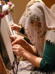 Keywords: teppichknuepferin hand labor carpet weave woman work craft thread loom turkey cappadocia veil veiled