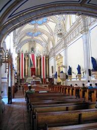 Keywords: TequilaChurchInside.JPG en Inside the Church of Santiago Apostol in Tequila Jalisco Mexico The statues are shrouded as this picture was taken on Maundy Thursday Own Thelmadatter 2009-04-09 Churches in Jalisco Tequila Jalisco