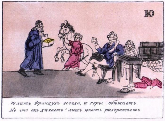 | Keywords: Terebenevskaya azbuka - Ю.jpg ru знаменитое издание «Пода ок детям в память о событиях 1812 года» более известное как «Те ебеневская азбука» Её создатель скульпто И И Те ебенев 1780-1815 завоевал поистине всена одную славу своими г афическими листами на темы Отечественной войны 1812 года Те ебеневу п инадлежит более полусотни сати ических исунков снискавших на яду с ка икату ами А Г Венецианова и И А Иванова небывалую популя ность в самых ши оких к угах усского общества s 1810 http //www museum ru/museum/1812/Library/Azbuka/ И И Те ебенев 1780-1815 other versions PD-old-70-1923 Terebenevskaya azbuka Russian letter Yu Files uploaded by Shakko from various sources Uploaded with UploadWizard Cyrillic Yu as an initial |