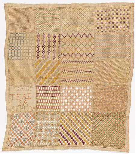 | Keywords: Teresa Sepeda - Sampler - Google Art Project.jpg Teresa 6818777 Sepeda /collection/cooper-hewitt-national-design-museum/artwork/sampler-teresa-sepeda/6818778/ 176996 Teresa Sepeda /artist/teresa-sepeda/12689616/ 12689616 /collection/cooper-hewitt-national-design-museum/ Cooper-Hewitt National Design Museum 3644669 http //www cooperhewitt org/ /collection/cooper-hewitt-national-design-museum/artwork/sampler-teresa-sepeda/6818778/ 1800 early 19th century Medium silk embroidery on linen foundationTechnique embroidered in chain satin cross four-sided and running stitches with withdrawn element work on plain weave foundation 390 6818778 False 1825 1981-28-387 http //collection cooperhewitt org/view/objects/asitem/id/176996 Bequest of Gertrude M Oppenheimer Sampler 1800 1830 w335 x h390 cm early 19th century False 0 8828125 Object sampler-teresa-sepeda Sampler s 335 H x W 38 7 x 33 7 cm 15 1/4 x 13 1/4 in Teresa Sepeda Medium silk embroidery on linen foundationTechnique embroidered in chain satin cross four-sided and running stitches with withdrawn element work on plain weave foundation special url_id FAGP6MVec723Rg PD-old-100-1923 Google Art Project works by Teresa Sepeda Textiles in the Cooper “Hewitt Smithsonian Design Museum 19th-century samplers Google Art Project works in Cooper-Hewitt Smithsonian Design Museum |