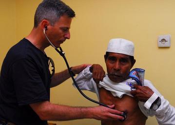 | Keywords: Ternate Hospital - US physician examines man.jpg Ira Nash performs a pre-operation examination during a surgery screening at Ternate Hospital http //www c7f navy mil/imagery/galleries/monthly/2010/07-July/slides/100718-N-4044H-061 htm 2010-07-18 Eddie Harrison U S Navy PD-USGov-Military-Navy Ternate Indonesia Anterior chest auscultation Physicians from the United States | ||||