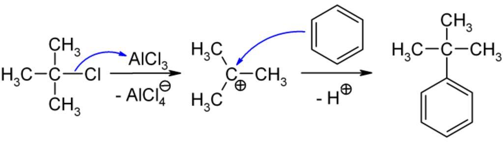 | Keywords: Tert-Butylbenzene synthesis.png Synthesis of tert-butylbenzene by Friedel-Crafts alkylation with 2-chloro-2-methylpropane own work drawn with MDL ISISDraw<sup>®</sup> 2006-11-24 Dschanz public domain Reactions of benzene Friedel-Crafts alkylation Reactions of tert-butyl chloride Reactions of aluminium chloride |