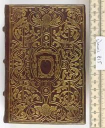 | Keywords: Tertia pars summae angelici doctoris Sanctae Thome de Aquino - Upper cover (Davis815).jpg Style Armorial Cherubs head Interlacing ribbon/strapwork; Caption Upper cover; Colour Brown; Edge Gauffered Gilt exhibition history Decorative Technique Tooled in gold; Cover Material Goatskin includes morocco turkey etc Macchi states;Rome 1550 onwards Cardinal's hat on upper cover object history Text 16c; Rouen; Unspecified object type Cc-zero place of creation Binding Italy place of discovery See T de Marinis Die italienischen Renaissance- Einbaende der Bibliothek Fuerstenberg Hamburg 1966 p 78-79; A Hobson Italian 16 th century bookbinding n 20 p 54-55 item 2 M M Foot The Henry Davis Gift vol III London 2010 p400 British Library image http //www bl uk/catalogues/bookbindings/LargeImage aspx RecordId 020-000004994 ImageId ImageId 42102 Copyright BL Tertia pars summae angelici doctoris Sanctae Thome de Aquino Uploaded with GWToolset Tertia pars summae angelici doctoris Sanctae Thome de Aquino - Upper cover Davis815 http //www webarchive org uk/bldatasets/bindings/6679_4 jpg Bookbinding 16th-century bookbinding British Library Bookbindings |