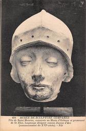 | Keywords: Tete de Saint Maurice Orleans.jpg sallet belongs to the mid 15th century The postcard was sold in the Musée de sculpture comparée after 1937 Musée des monuments français but the head is identified as being kept in the Musée d'Orléans founded 1823 now Musée historique et archéologique de l'Orléanais or possibly the photograph is of a plaster cast of the original that was on exhibit in Paris Caption MUSÉE DE SCULPTURE COMPARÉE Tête de Saint Maurice conservée au Musée d'Orléans et provenant de St-Eloi longtemps désignée comme Jeanne d'Arc commencement du XVI<sup>e</sup> siècle -ND The idea that the head was modelled after Joan of Arc was very popular in 19th-century Romanticism enthusiastically defended by Walter Scott and still by Bernard Shaw although it seems that the identification with Joan of Arc had come to be held untenable before 1900 although it is still defended at least on the Internet today Louis-Ernest Barrias 1841 1905 produced a clay sculpture of the head of Jeanne d'Arc based on the artefact http //parismuseescollections paris fr/petit-palais/oeuvres/tete-de-jeanne-d-arc-casquee-ou-jeanne-d-arc infos-principales Petit Palais musée des Beaux-arts de la Ville de Paris inv no PPS1289 St-Éloi or St-Éloi-St-Maurice 14th-century parish church in Orléans just west of Orléans cathedral https //books google ch/books id kKUWAAAAYAAJ pg PA69 v onepage q f false Inline coordinates 47 9013 1 9083 formerly dedicated to Saint Maurice but was re-dedicated to St Éloi in 1388https //doc rero ch/record/17962/files/TA_525_2 pdf for which reason the head was identified as a statue of that Saint The argument was that as St Maurice is usually depicted as a bearded moor and this head is that of a clearly white young man or woman Walter Scott unquestionably the head of a girl of nineteen or so it stands to reason that it was directly modelled after St Joan Modern art historians assume that it is not from a statue of St Maurice at all but rather from a statue of St George dating to the early 16th century The church had been raided by Huguenots in 1567 and served as the seat of the guild of goldsmiths after that https //books google ch/books id xT8KAAAAIAAJ q T C3 AAte+casqu C3 A9e+d C3 A9couverte The head was discovered apparently with fragments of the body when the remains of a wall of the old church was torn down to make way for an extension of the sugar refinery of Louis-Auguste Pilté-Grenet d 1842 apparently a member of the Bande noire who had acquired the refinery from the Boislève family on 19 November 1827 ;References https //books google ch/books id ECBNAQAAMAAJ pg PA260 19 novembre 1827 En démolissant une partie du mur intérieur sud de l'ancienne église de Saint-Eloi d'Orléans pour y place une machine à l'usage de la raffinerie de M Pilté-Grenet qui y est étable on trouva les fragmens d'une statue en pierre dure représentant un guerrier ayant un casque et une cuirasse d'une sculpture drés-gothique quoique bien faite; M Pilté fit sur-le-champ hommage de cette statue au Musée où elle fut déposée dans le cabinet des antiquités 28-76-77 Tête casquée découverte en 1820 dans les démolitions des restes de l'ancienne église Saint-Eloi-Saint-Maurice considérée parfois mais à tort comme représentant Jeanne d'Arc; c'est en réalité une tête de St Georges Val de Loire; Maine Orléanais Touraine Anjou Hachette 1963 p 70 A more compelling representation of Joan's facial features can be seen in a sculpted head in bronze sic it is not actually in bronze but in stone now in the Musée Jeanne d'Arc in Orléans sic there is no such museum there was a museum with this name in Rouen until 2012 but it seems the head was never kept there The head is all that remains of a statue formerly to be found in the now demolished church of Saint-Maurice There is a tradition sic there is no such tradition speculation to this effect was published after the discovery of the head in 1827 than when Joan entered Orléans in triumph after the siege was raised a sculptor modelled the head of his statue of St Maurice from Joan herself https //books google ch/books id k9maU4D-QLUC pg PP2 lpg PP2 v onepage q f false Joan M Edmunds The Mission of Joan of Arc Temple Lodge Publishing 2008 https //books google ch/books id k9maU4D-QLUC pg PA40 lpg PA40 v onepage q f false 40f Michał Monikowski http //www monio info/2014/10/12/reconstructing-the-looks-of-joan-of-arc/ Reconstructing the looks of Joan of Arc 2014 http //www jeannedomremy fr/S_Questions/visagedejeanne htm Les représentations de Jeanne jeannedomremy fr old postcard c 1900 1918 photograph may be older c 1889 1900 ND either Étienne 1832-1918 or Louis-Antonin 1846-1914 Neurdein Lévy et Neurdein réunis - 44 rue Letellier - Parishttps //books google ch/books id Kd5cAgAAQBAJ pg PA992 v onepage q f false circa 1900 photograph c 1500 statue Other photographs http //www stjoan-center com/picessay/helmet jpghttp //i658 photobucket com/albums/uu305/FabrizioDeTemprafore/CopyofScreenshot_8copy_zpsed8e1d82 pnghttp //i658 photobucket com/albums/uu305/FabrizioDeTemprafore/bourassin jpghttp //www myartprints com/a/french-school/head-presumed-to-be-of-jo html Sculptures of heads People with helmets in art Sallets Orleans Musée historique et archéologique d'Orléans Jeanne d'Arc Statues of Saint Maurice in France Statues of Saint George in France Plaster casts in the Musée des monuments français Lévy et Neurdein réunis PD-old-70 |