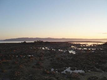 Keywords: TeTokaroa2.jpg en Te Tokaroa Reef Auckland looking north Own Bhutt 2009-07-26 Meola Reef Sunrises of New Zealand