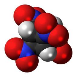 | Keywords: Tetranitrocubane-3D-spacefill.png Space-filling model of the tetranitrocubane molecule an explosive nitro compound Colour code 505050 Carbon C black<br> F0F0F0 Hydrogen H white<br> F51E1E Oxygen O red<br> 3C50FA Nitrogen N blue<br> 2011-01-27 own DS Visualizer Jynto talk Ball-and-stick version cc-zero Tetranitrocubane Images by Jynto |