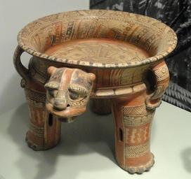 | Keywords: Tetrapod Jaguar Effigy Vessel with rattle supports, 1200-1400 AD, Guanacaste-Nicoya zone, Costa Rica, earthenware with black and red on light orange slip - Gardiner Museum, Toronto - DSC01196.JPG Exhibit in the Gardiner Museum Toronto Ontario Canada This artwork is in the public domain because the artist died more than 70 years ago Photography was permitted in the museum without restriction Daderot 2012-10-16 16 41 45 Daderot cc0 cc0 Mesoamerican pottery in the Gardiner Museum Nicoya pottery Jaguars in Pre-Columbian art |