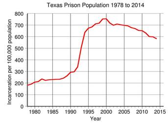 | Keywords: Texas Prison Population.svg en Texas prison incarceration rate per 100 000 population from 1978 to 2014 Data from http //www bjs gov/index cfm ty nps BJS 2016-05-10 own Delphi234 other versions current annually Generated with Wikimedia SVG Chart SVG Chart/box cc-zero Prisons in Texas Imprisonment and detention rates in the United States |