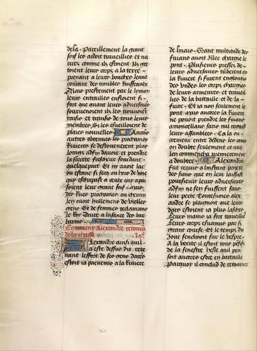 | Keywords: Text Page - Google Art Project (6901531).jpg None 430703 Unknown /collection/the-j-paul-getty-museum/artwork/text-page-unknown/6901531/ Unknown illuminator /collection/the-j-paul-getty-museum/ The J Paul Getty Museum 343005 http //www getty edu/museum 3/13/2012 12 16 10 AM /collection/the-j-paul-getty-museum/artwork/text-page-unknown/6901531/ 1470 about 1470 - 1475 Tempera colors gold leaf gold paint and ink on parchment 432 6901531 True 1475 3/25/2012 3 20 37 PM lido getty edu-gm-obj145449 http //www getty edu/art/gettyguide/artObjectDetails artobj 145449 http //www getty edu/legal/copyright html Folio 1470 1480 Lille written France Creation w330 x h432 cm about 1470 - 1475 False 0 73046875 Part text-page-unknown Text Page t 330 Tempera colors gold leaf gold paint and ink on parchment http //www getty edu/legal/copyright html special url_id lwEGFxWVdWClgw PD-old-100 Google Art Project works by unknown artist MS LUDWIG XV 8 Getty museum - Livre des fais d'Alexandre le grant |