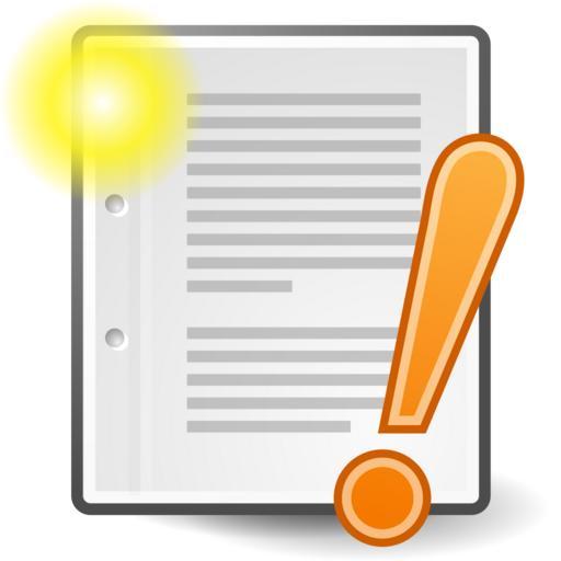| Keywords: Text-x-generic-attention.svg en An icon derived from the http //tango freedesktop org/Tango_Desktop_Project Tango set own based upon file Text-x-generic svg from the Tango project 2015-04-09 http //tango freedesktop org/The_People The people from the Tango project modifications by User Perhelion Tango project validSVG Tango project/mimetypes Paper sheet icons with text |