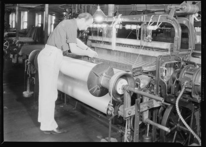 | Keywords: nara:arcid=518760 u.s. national archives usnationalarchives lewis hine lewishine the great depression thegreatdepression work portraits workportraits works progress administration worksprogressadministration paterson new jersey newjersey 1937 blackandwhite monochrome photo border black and white Original Caption: Paterson, New Jersey - Textiles. Wishnack Silk Company. Back view of the same loom showing the double beam. A single, double, or triple beam is used on this type of loom depending upon the type of yarn and weave being employed. The cloth shown is a mixture of a rayon yarn and an acetate yarn, both requiring different take-ups; hence the use of the double beam, June 1937 U.S. National Archives’ Local Identifier: 69-RP-703 Photographer: Hine, Lewis Subjects: The New Deal Tennessee Valley Authority Works Progress Administration Work Portraits The Great Depression Persistent URL: research.archives.gov/description/518760 Repository: Still Picture Records Section, Special Media Archives Services Division (NWCS-S), National Archives at College Park, 8601 Adelphi Road, College Park, MD, 20740-6001. For information about ordering reproductions of photographs held by the Still Picture Unit, visit: www.archives.gov/research/order/still-pictures.html Reproductions may be ordered via an independent vendor. NARA maintains a list of vendors at www.archives.gov/research/order/vendors-photos-maps-dc.html Access Restrictions: Unrestricted Use Restrictions: Unrestricted Original Caption: Paterson, New Jersey - Textiles. Wishnack Silk Company. Back view of the same loom showing the double beam. A single, double, or triple beam is used on this type of loom depending upon the type of yarn and weave being employed. The cloth shown is a mixture of a rayon yarn and an acetate yarn, both requiring different take-ups; hence the use of the double beam, June 1937 U.S. National Archives’ Local Identifier: 69-RP-703 Photographer: Hine, Lewis Subjects: The New Deal Tennessee Valley Authority Works Progress Administration Work Portraits The Great Depression Persistent URL: research.archives.gov/description/518760 Repository: Still Picture Records Section, Special Media Archives Services Division (NWCS-S), National Archives at College Park, 8601 Adelphi Road, College Park, MD, 20740-6001. For information about ordering reproductions of photographs held by the Still Picture Unit, visit: www.archives.gov/research/order/still-pictures.html Reproductions may be ordered via an independent vendor. NARA maintains a list of vendors at www.archives.gov/research/order/vendors-photos-maps-dc.html Access Restrictions: Unrestricted Use Restrictions: Unrestricted |