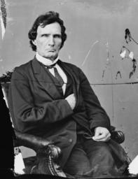 | Keywords: Thaddeus Stevens - Brady-Handy.jpg Hon Thaddeus Stevens of Penn Library of Congress Prints and Photographs Division Brady-Handy Photograph Collection http //hdl loc gov/loc pnp/cwpbh 00460 CALL NUMBER LC-BH83- 613 <P P>P P between 1860 1875 Creator Mathew Brady Creator Levin Corot Handy PD thumb left retouched version LOC-image cwpbh 00460 4 April 1792 in Danville Vermont 11 August 1868 in Washington D C auch bekannt als Der große einfache Bürger The Great Commoner war ein außerordentlich radikaler Republikaner und Anwalt bekannt für die Verteidigung geflohener Sklaven Nachdem er 1814 das Dartmouth College absolviert hatte ging er nach York wo er an einer Schule unterrichtete und Recht studierte Nach seiner Approbation als Anwalt etablierte er 1815 eine erfolgreiche Anwaltskanzlei erst in Gettysburg und später in Lancaster April 4 1792 August 11 1868 was a member of the United States House of Representatives from Pennsylvania He was the powerful leader of the Radical Republicans during the American Civil War and Reconstruction His biographer characterizes him as The Great Commoner savior of free public education in Pennsylvania national Republican leader in the struggles against slavery in the United States and intrepid mainstay of the attempt to secure racial justice for the freedmen during Reconstruction the only member of the House of Representatives ever to have been known even if mistakenly as the 'dictator' of Congress <ref>Trefouse p xi</ref> This summary was created using Commons SumItUp PD-Brady-Handy Photographs by Mathew Brady and Levin Handy Stevens Thaddeus Black and white photographic portraits of politicians Stevens Thaddeus Thaddeus Stevens |