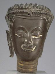 | Keywords: Thai - Head of Crowned Buddha - Walters 542810.jpg At the back of this head- as a substitute for rather than a development of the ornament on 16th-century crowns- are scrolling tendrils and leaves which take a place in an international panorama of related designs; the Europeanized stucco decor at Wat Tawęt; the designs on certain Japanese enamelled porcelain vases made for export around the 1670s; and the assimilated and vibrantly rhythmic patterns in contemporary gilt-lacquer ornament 2nd half Other date century 17 Ayutthaya tin brass cm 8 2 ; with repairs cm 10 accession number 54 2810 37176 Nakhon Kasem Bangkok Alexander B Griswold Monkton 1946 by purchase presented to the Breezewood Foundation 1985 inv no 808 Walters Art Museum 1992 by bequest Bequest of A B Griswold 1992 none Unearthly Elegance Buddhist Art from the Griswold Collection The Walters Art Gallery Baltimore 1995 place of origin Ayutthaya Thailand Walters Art Museum license Thai sculptures in the Walters Art Museum Art of Ancient Thailand Media contributed by the Walters Art Museum needs category review |