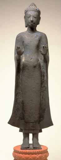 Keywords: Thai - Standing Buddha - Walters 542708.jpg This is the most common type of Dvaravati Buddha image with both hands performing a gesture of instruction The face suggests utter calm century 8 9 Dvaravati bronze cm 37 with tang cm 39 5 accession number 54 2708 30339 Private collection Thonburi prior to April 13 1951 Alexander B Griswold Monkton April 13 1951 presented to the Breezewood Foundation December 1959 inv no 143 Walters Art Museum Henry Walters Bequest of A B Griswold 1992 none Unearthly Elegance Buddhist Art from the Griswold Collection The Walters Art Gallery Baltimore 1995 place of origin Thailand Walters Art Museum license Thai sculptures in the Walters Art Museum Art of Ancient Thailand Media contributed by the Walters Art Museum needs category review |