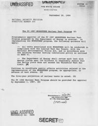| Keywords: The 1987 MUSKETEER Nuclear Test Program - NARA - 198344.jpg Scope and content General notes 198344 Local identifier President 1981-1989 Reagan National Security Council 1981 - 1989 Ronald Reagan Library NLRR 40 Presidential Drive Simi Valley CA 93065-0600 1986-09-29 Record group Collection RR-NSC Numbered National Security Policy Papers 1981 - 1989 Record group ARC 1189 National Security Decision Directives compiled 02/25/1981 - 01/19/1989 Series ARC 198166 File unit File unit ARC Variant control numbers NAIL Control Number NLS-NSC-NSDD-242 Other versions <gallery> File The_1987_MUSKETEER_Nuclear_Test_Program_-_NARA_-_198344 tif tif File The_1987_MUSKETEER_Nuclear_Test_Program_-_NARA_-_198344 jpg jpg </gallery> NARA-cooperation PD-USGov Operation Musketeer nuclear test Presidential Decision Directives Reagan |