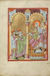 | Keywords: The Adoration of the Magi - Google Art Project (6799947).jpg The Adoration of the Magi from this Regensburg benedictional introduces the feast of Epiphany on January 6 This holiday commemorates the visit of the three wise men from the East to the newborn Jesus On one side the three Magi stand against a gold ground offering their gifts in containers that may have been meant to allude to the future consecration of wine and bread in the Eucharist Above their heads hovers the star that guided them to Jesus drawn in red on the gold ground On the other side of the central column a large and monumental Virgin seated on a throne welcomes the visitors with a gesture of blessing while holding Jesus on her lap He looks more adult than childlike as he also makes the sign of blessing By using a restrained palette of blue rose green and burnished gold the artist imbued this scene with a calm harmony complementing the monumentality of the balanced composition Through all these choices the artist expressed the majesty of the sacred figures The Ottonian innovation of representing the wise men as kings quickly became the common depiction None 430703 Unknown /collection/the-j-paul-getty-museum/artwork/the-adoration-of-the-magi-unknown/6799947/ Unknown illuminator /collection/the-j-paul-getty-museum/ The J Paul Getty Museum 343005 http //www getty edu/museum 3/12/2012 2 49 56 PM /collection/the-j-paul-getty-museum/artwork/the-adoration-of-the-magi-unknown/6799947/ 1030 about 1030 - 1040 The Magi Adoration of the Magi Christ Child Saint Joseph Mary Joseph Tempera colors gold leaf and ink on parchment 232 6799947 True 1040 3/25/2012 8 28 11 AM lido getty edu-gm-obj3486 http //www getty edu/art/gettyguide/artObjectDetails artobj 3486 http //www getty edu/legal/copyright html Folio 1030 1050 Regensburg Bavaria Germany Creation w160 x h232 cm about 1030 - 1040 False 0 666015625 Part the-adoration-of-the-magi-unknown The Adoration of the Magi a 160 Tempera colors gold leaf and ink on parchment The Magi Adoration of the Magi Christ Child Saint Joseph Mary Joseph http //www getty edu/legal/copyright html special url_id OwE80-ngj03y2A PD-old-100 Google Art Project works by unknown artist Miniatures of the Adoration of the Magi MS LUDWIG VII 1 Getty museum - Benedictional |