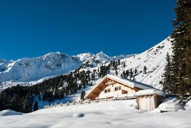 Keywords: Almindalm Fotscher Valley cabin snow log mountainous mountain skiing isolated