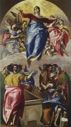 | Keywords: The Assumption of the Virgin 1577.jpg Artwork Q11837891 Creator El Greco en Assumption of the Virgin 1577 was El Greco ™s first commission in Spain The composition of the painting which measures size m 4 01 2 28 is divided into two halves The upper section depicts the Virgin Mary rising to heaven while in the lower section people stare in awe and amazement The figures are not elongated as they were to become in El Greco ™s later work 1577 Oil on canvas size cm 401 229 institution Art Institute of Chicago object history credit line accession number http //www digibis com/elgreco_digimus/es/musobjects/2730 html ctx freetext 3A0 PD-old-100 painting religious Spanish 1551-1600 original upload log page en wikipedia The_Assumption_of_the_Virgin_1577 jpg 2006-02-19 11 40 Brastite 750×1325×8 176882 bytes Assumption of the Virgin 1577 was El Greco ™s first commission in Spain The composition of the painting which measures 4 01 x 2 28 m 158 x 90 in is divided into two halves The upper section depicts the Virgin Mary rising to heaven while in the lo Assumption of Mary by El Greco 1577 Mannerist paintings of Virgin Mary 1577 Spanish paintings in the Art Institute of Chicago 1577 WGA form painting WGA type religious WGA School Spanish WGA time period 1551-1600 1570s paintings from Spain 16th-century religious paintings in the United States Paintings of Virgin Mary in the United States 1577 oil on canvas paintings in the United States 1570s religious paintings |