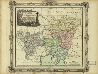 | Keywords: The Austrian Circle WDL247.png Artwork ru Б ион де ла Ту Луи fr Brion de la Tour Louis en Brion de la Tour Louis zh 翁德拉图尔 路易斯 pt Brion de la Tour Louis ar بريون دي لاتور لويس es Brion de la Tour Louis ru Авст ийский к уг fr Cercle autrichien en The Austrian Circle zh 奥 利周 pt O Círculo Austríaco ar ال دائرة النمساوية ru Ст укту а Священной Римской импе ии 962-1806 в начале XVI века включала девять Импе ских к угов в каждом из кото ых было свое законодательное соб ание или па ламент и яд обязанностей связанных с обо оной сбо ом налогов и д угими функциями екото ые те ито ии импе ии нап име Богемия и частично Италия не вошли в к уговую ст укту у а этой ф анцузской ка те конца XVIIIвека показан авст ийский к уг кото ый во многом совпадал с землями уп авляемыми из Вены домом Габсбу гов Помимо самой Авст ии авст ийский к уг включал яд те ито ий нынешней Ге мании Италии Словении и Швейца ии <br>Ев опа Цент альная fr Le Saint Empire romain germanique 962-1806 a été organisé au début des années 1500 en dix cercles impériaux dont chacun disposait de sa propre Diète ou Parlement ainsi que de certaines responsabilités en matière de défense de collecte des impôts et d'autres fonctions Certains territoires de l'empire par exemple la Bohême et des parties de l'Italie n'ont pas été regroupées en cercle Cette carte française de la fin du 18ème siècle montre le cercle autrichien qui coïncidait largement avec les terres régies par la Maison des Habsbourg à Vienne En plus de l'Autriche proprement dite le cercle autrichien incluait certaines parties de l'actuelle Allemagne Italie Slovénie et Suisse <br>Europe centrale en The Holy Roman Empire 962-1806 was organized beginning in the early 1500s into ten Imperial Circles each of which had its own diet or parliament and which had certain responsibilities with regard to defense tax collection and other functions Some territories of the empire for example Bohemia and parts of Italy were not grouped in circles This late-18th century French map shows the Austrian Circle which largely coincided with those lands ruled by the House of Habsburg from Vienna In addition to Austria proper the Austrian Circle included parts of present-day Germany Italy Slovenia and Switzerland <br>Europe Central zh 神 罗马 国(962-1806 年)自16世纪早 始形成十大 国版图,每个集团 其自己的议会或国会, 关国防 税收征管以及其他功能上 承担各自的义务 国的某些领 ,如波西米亚和意大利部分 区,并 归到上述版图中 这幅 18 世纪晚 的 法语 图描述了奥 利版图,与维也纳的哈布斯堡众议院管辖的 几乎完全吻合 除了奥 利 ,该奥 利版图还包括如今德国 意大利 斯洛文尼亚和瑞士的部分 区 <br>中欧 pt O Sagrado Império Romano 962-1806 foi organizado no início do século XVI em dez círculos imperiais Cada um tinha sua própria assembléia dieta ou parlamento os quais tinham determinadas responsabilidades no que diz respeito à defesa à coleta de impostos e outras funções Alguns territórios do império por exemplo a Bohemia e partes da Itália não foram agrupados em círculos Este mapa francês do final do século XVIII mostra o Círculo Austríaco que coincidia em grande parte com aquelas terras governadas pela Casa dos Habsburgo de Viena Além da Áustria propriamente dita o Círculo Austríaco incluía partes da atual Alemanha Itália Eslovenia e Suíça <br>Europa Central ar إبتداء من أوائل القرن السادس عشر، كانت الإمبراطورية الرومانية المقدسة 962 - 1806 منظمة إلى عشر دوائر إمبراطورية، لكل منها مجلس تشريعي أو برلمان، كان لها بعض المسؤوليات فيما يتعلق بالدفاع وتحصيل الضرائب وغيرها من المهام بعض أراضي الإمبراطورية، بوهيميا وأجزاء من إيطاليا على سبيل المثال، لم تكن مجمعة في دوائر تظهر هذه الخريطة الفرنسية منأواخر القرن الثامن عشر الدائرة النمساوية التي تتطابق إلى حد كبير مع تلك الأراضي التي تحكمها أسرة هابسبورغ من فيينا شملت دائرة النمسا، بالإضافة إلى الأراضي النمساوية البحتة، أجزاء من ألمانيا الحالية وإيطاليا وسلوفينيا وسويسرا <br>أوروبا الوسطى es El Sacro Imperio Romano 962-1806 estaba estructurado desde principios de 1500 en diez Círculos Imperiales cada uno de los cuales poseía su propia asamblea o parlamento que tenía ciertas responsabilidades en relación con la defensa la recaudación de impuestos y otras funciones Algunos territorios del imperio como por ejemplo Bohemia y partes de Italia no estaban organizados en círculos Este mapa francés de finales del siglo XVIII muestra el Círculo Austríaco que coincidía en su mayor parte con las tierras gobernadas por la Casa de Habsburgo de Viena Además de Austria propiamente dicha el Círculo Austríaco incluía partes de la actual Alemania Italia Eslovenia y Suiza <br>Europa Central 1792 ru Ка ты fr Cartes en Maps zh 图 pt Mapas ar خرائط es Mapas en 1 map color ; 23 x 25 centimeters ru Библиотека Конг есса fr Bibliothèque du Congrès en Library of Congress zh 国
