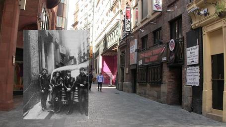 Keywords: beatles mathew street cavern liverpool sites road alley The Beatles photographed in Mathew Street very near the Cavern Club The Beatles photographed in Mathew Street very near the Cavern Club