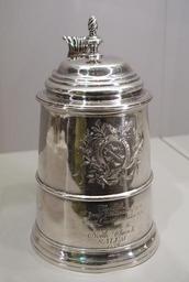 | Keywords: The Benjamin Pickman Tankard, Daniel Parker, American, c. 1759, silver - Fogg Art Museum, Harvard University - DSC01386.jpg en Exhibit in the Fogg Art Museum Harvard University Cambridge Massachusetts USA This artwork is in the public domain because the artist died more than 70 years ago 2015-04-11 12 22 21 own Daderot other versions PD-old-70 cc-zero Silver in the Fogg Art Museum Daniel Parker silversmith | ||||