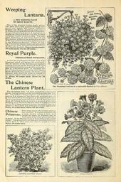 | Keywords: The best homes in America plant my flowers, why not you? (16387701501).jpg Weeping <br> Lantana <br> A NEW WEEPING PLANT <br> OF GREAT BEAUTY <br> One of the grandest basket plants grown' <br> The plant has a most graceful drooping habit' <br> frows very rapidly and blooms continually <br> ummer and Winter producing large clusters <br> of flowers of the most delicate lilac or rosy-pink <br> loliage a beautiful dark green A single plant on <br> August 1st this p \st Summer had five hundred <br> and ninety clusters of flowers on it The same <br> plant December 1st had three hundred and <br> fifty clusters of flowers on which proves itone <br> of the most persistent bloomers and does equal- <br> ly well Winter and Summer I know of noth- <br> ing of recent introduction thatis aseasily grown <br> and gives so much pleasure and satisfaction as <br> this beautiful Lantsna Price strong plants <br> 15 cents each; two for 25 cents <br> Royal Purple <br> STROBILANTHES DYERIANUS <br> A new and very beautiful foliage plant from <br> Singapore which will become universally pop- <br> ular on account of the brilliant and exquisite <br> coloring of its leaves the beauty of its fljwers <br> »nd its extraordinarily easy growth and useful- <br> ness as a decorative plant It surpasses the <br> finest Coleus in exquisite coloring of the leaves <br> besides which the long racemes of lovely violet <br> blossoms with which the plant is covered in <br> mid-winter greatly enhance its value and beau- <br> ty Price 10 cents each; three tor 25 <br> cents <br> The Chinese <br> Lantern Plant <br> The introducer says A most magnificent plant fo- the <br> garden during Summer or for pots both Summer and Win- <br> ter Trea'edlikea Tomato it grows and fruits freely from <br> seed the first season yet the plants are perennial and may <br> be wintered in the cellar or grown in pits as window plants <br> The p ant produces numerous large inflated husks much the <br> shape of Chinese lanterns at first a beautiful green color <br> changing to a yellowish hue and then to brightest scarlet <br> and as they hang suspended among the green foliage they <br> present a most novel and strikingly beautiful appearance <br> Price 10 cents each; three for 25 cents <br> Few house plants afford better satisfac- <br> tion than this It requires to be keptrool <br> Chinese <br> Pf l tn f f £ a norl window suiting it best Care <br> 1 1 Illli LfSC should be taken in watering that no <br> water gets on the buds as it causes them <br> to decay In the Summer they can be turned out into a shady <br> border The plants I offer are fine and the colors will please <br> I have them in white pink red crimson striped and blue <br> Price 10 cents each 41846999 130961 64578 Text http //www biodiversitylibrary org/page/41846999 1899 10 5962/bhl title 64578 Ella V Baines Firm ; Henry G Gilbert Nursery and Seed Trade Catalog Collection NameFound Lantana NameConfirmed Lantana L EOLID 37682 NameBankID 459108 NameFound Strobilanthes dyerianus NameConfirmed Strobilanthes dyerianus NameBankID 8521808 Biodiversity Heritage Library Miss Ella V Baines the Woman Florist Springfield Ohio The best homes in America plant my flowers why not you Garden Stories Bulbs Plants Catalogs Flowers Plants Ornamental Seed industry and trade Seeds Trade catalogs U S Department of Agriculture National Agricultural Library bhl page 41846999 dc identifier http //biodiversitylibrary org/page/41846999 bhlGardenStories BHLinbloom bulbs plants plants ornamental u s department of agriculture national agricultural library bhlgardenstories bhlinbloom Information field Flickr posted date ISOdate 2015-01-28 CC-BY-2 0 BioDivLibrary https //flickr com/photos/61021753 N02/16387701501 2015-08-24 06 53 36 cc-by-2 0 PD-old-70-1923 Photos uploaded from Flickr by Fæ using a script The best homes in America The best homes in America plant my flowers, why not you? (16387701501).jpg Weeping <br> Lantana <br> A NEW WEEPING PLANT <br> OF GREAT BEAUTY <br> One of the grandest basket plants grown' <br> The plant has a most graceful drooping habit' <br> frows very rapidly and blooms continually <br> ummer and Winter producing large clusters <br> of flowers of the most delicate lilac or rosy-pink <br> loliage a beautiful dark green A single plant on <br> August 1st this p \st Summer had five hundred <br> and ninety clusters of flowers on it The same <br> plant December 1st had three hundred and <br> fifty clusters of flowers on which proves itone <br> of the most persistent bloomers and does equal- <br> ly well Winter and Summer I know of noth- <br> ing of recent introduction thatis aseasily grown <br> and gives so much pleasure and satisfaction as <br> this beautiful Lantsna Price strong plants <br> 15 cents each; two for 25 cents <br> Royal Purple <br> STROBILANTHES DYERIANUS <br> A new and very beautiful foliage plant from <br> Singapore which will become universally pop- <br> ular on account of the brilliant and exquisite <br> coloring of its leaves the beauty of its fljwers <br> »nd its extraordinarily easy growth and useful- <br> ness as a decorative plant It surpasses the <br> finest Coleus in exquisite coloring of the leaves <br> besides which the long racemes of lovely violet <br> blossoms with which the plant is covered in <br> mid-winter greatly enhance its value and beau- <br> ty Price 10 cents each; three tor 25 <br> cents <br> The Chinese <br> Lantern Plant <br> The introducer says A most magnificent plant fo- the <br> garden during Summer or for pots both Summer and Win- <br> ter Trea'edlikea Tomato it grows and fruits freely from <br> seed the first season yet the plants are perennial and may <br> be wintered in the cellar or grown in pits as window plants <br> The p ant produces numerous large inflated husks much the <br> shape of Chinese lanterns at first a beautiful green color <br> changing to a yellowish hue and then to brightest scarlet <br> and as they hang suspended among the