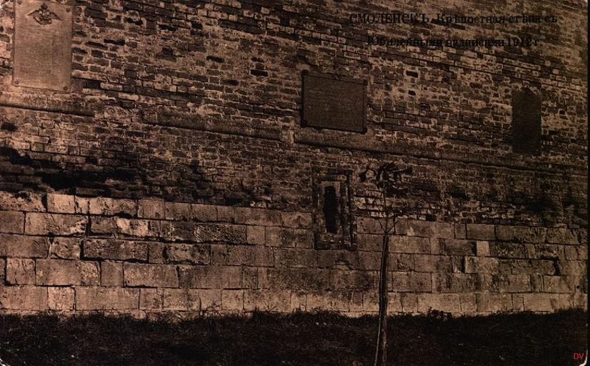 | Keywords: The bottom of the tower Donets in 1912.jpg en The bottom of the tower in the park Donets memory Heroes with commemorative tablets established in 1912 preserved only the center ru из башни Донец в скве е памяти Ге оев с юбилейными ск ижалями установленными в 1912 году сох анилась только цент альная О игинальная отк ытка е установлены До 1917 года PD-RusEmpire 20th-century postcards Postcards of Smolensk Donec Tower | ||||