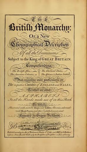 Keywords: public domain engravings drawing reference collage fodder text document writing plaque Public Domain Book: The British monarchy or, A new chronographical description of all the dominions subject to the King of Great Britain. Comprehending the British Isles, the American Colonies, the electoral states, the African and Indian settlements. And enlarging more particularly on the respective counties of England and Wales. To which are added, alphabets in all hands made use of in this book. The whole illustrated with suitable maps and tables ... and engrav'd by George Bickham Published 1743 by G. Bickham in [London] . Written in English. openlibrary.org/books/OL25199420M/The_British_monarchy Public Domain Book: The British monarchy or, A new chronographical description of all the dominions subject to the King of Great Britain. Comprehending the British Isles, the American Colonies, the electoral states, the African and Indian settlements. And enlarging more particularly on the respective counties of England and Wales. To which are added, alphabets in all hands made use of in this book. The whole illustrated with suitable maps and tables ... and engrav'd by George Bickham Published 1743 by G. Bickham in [London] . Written in English. openlibrary.org/books/OL25199420M/The_British_monarchy |