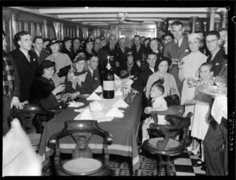 | Keywords: samuel j hood collection samueljhoodcollection hood collection hoodcollection hood morinda burns philp burnsphilp mystery island mysteryisland australian film australianfilm talkie cast crew producer director actors actresses brian abbot brianabbot leslie hay simpson lesliehaysimpson desmond hay desmondhay george rikard bell georgerikardbell grace rikard bell gracerikardbell jean mort jeanmort jean laidley jeanlaidley lost at sea lostatsea motor skiff motorskiff motor launch motorlaunch mystery star mysterystar george doran georgedoran jonas alfred lipman jonasalfredlipman joe lipman joelipman george d malcolm georgedmalcolm birthday farewell party 1930s fashion 1930sfashion vintage vintage clothing vintageclothing vintage fashion vintagefashion 1930s women's fashion 1930swomensfashion 1930s women's clothing 1930swomensclothing people groupshot blackandwhite monochrome black and white This photograph depicts the cast and crew members of the Australian film Mystery Island (1937) during a farewell party on board SS MORINDA. The party was also a 9th birthday party for the joy (who stands to the right). The cast and crew were sailing Lord Howe Island to shoot the film. Shortly after shooting the film, George Rikard Bell (screen name Brian Abbot) and a fellow cast mate, Leslie Hay Simpson (screen name Desmond Hay), decided to forego the trip back to Sydney on board MORINDA and opted to sail on board the 16-foot motor skiff, MYSTERY STAR. The two were never seen again. Please see our blog for an extended version of the story. This photo is part of the Australian National Maritime Museum’s Samuel J. Hood Studio collection. Sam Hood (1872-1953) was a Sydney photographer with a passion for ships. His 60-year career spanned the romantic age of sail and two world wars. The photos in the collection were taken mainly in Sydney and Newcastle during the first half of the 20th century. The ANMM undertakes research and accepts public comments that enhance the information we hold about images in our collection. This record has been updated accordingly. Photographer: Samuel J. Hood Studio Collection Object no. 00022882 This photograph depicts the cast and crew members of the Australian film Mystery Island (1937) during a farewell party on board SS MORINDA. The party was also a 9th birthday party for the joy (who stands to the right). The cast and crew were sailing Lord Howe Island to shoot the film. Shortly after shooting the film, George Rikard Bell (screen name Brian Abbot) and a fellow cast mate, Leslie Hay Simpson (screen name Desmond Hay), decided to forego the trip back to Sydney on board MORINDA and opted to sail on board the 16-foot motor skiff, MYSTERY STAR. The two were never seen again. Please see our blog for an extended version of the story. This photo is part of the Australian National Maritime Museum’s Samuel J. Hood Studio collection. Sam Hood (1872-1953) was a Sydney photographer with a passion for ships. His 60-year career spanned the romantic age of sail and two world wars. The photos in the collection were taken mainly in Sydney and Newcastle during the first half of the 20th century. The ANMM undertakes research and accepts public comments that enhance the information we hold about images in our collection. This record has been updated accordingly. Photographer: Samuel J. Hood Studio Collection Object no. 00022882 |