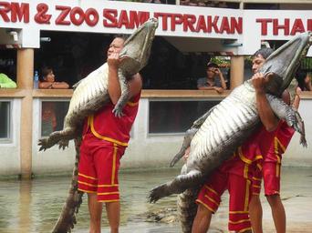 Keywords: the crocodile farm crocodile farm samut prakan thailand show people with crocodiles opened last month teeth jaws trick danger silver entertainment travel
