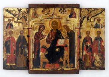 | Keywords: The Deesis (Intercession) flanked by saints - Google Art Project.jpg non-free frame unknown 830005 artist /collection/benaki-museum-of-greek-civilization/artwork/the-deesis-intercession-flanked-by-saints-unknown-artist/721005/ unknown artist /collection/benaki-museum-of-greek-civilization/ Benaki Museum of Greek Civilization 363091 http //www benaki gr/ /collection/benaki-museum-of-greek-civilization/artwork/the-deesis-intercession-flanked-by-saints-unknown-artist/721005/ 1650 175 721005 False 1699 complete ΓΕ_3024 http //www benaki gr/eMP-Collection/eMuseumPlus service ExternalInterface module collection viewType detailView objectId 279688 Benaki Museum triptych 1650 1700 w254 x h175 x d13 cm 1650 - 1699 False 1 41828254847645 Benaki Museum object the-deesis-intercession-flanked-by-saints-unknown-artist The Deesis Intercession flanked by saints d 254 special url_id ZgESC2E8RtQi4A PD-old-100 Google Art Project works by unknown artist Triptychs Icons of Deesis 17th-century icons of Greece |