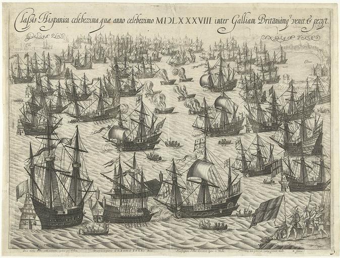 | Keywords: The demise of the Spanish Armada - Classis Hispanica celeberrima quae anno celeberrimo MDLXXXVIII inter Galliam Britaniamq venit & peryt.jpg en The demise of the Spanish Armada in 1588 Rijksmuseum Amsterdam RP-P-OB-80 067 Unknown Possibly Dolendo 1593 to1645 Spanish Armada Dutch 16th-century prints in the Rijksmuseum Amsterdam Dolendo Galleons of Spain Dutch 17th-century prints in the Rijksmuseum Amsterdam PD-old | ||||