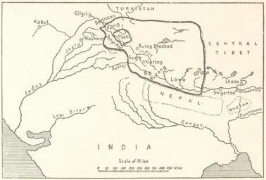 | Keywords: The empire of King Tsewang Rnam Rgyal 1., and that of King Jamyang Rnam Rgyal., about 1560 and 1600 A.D.jpg en The empire of King Tsewang Rnam Rgyal 1 and that of King Jamyang Rnam Rgyal about 1560 and 1600 A D as depicted in A History of Western Tibet by A H Francke 1907 republished as A History of Ladakh with Critical Introduction and Annotations by S S Gergan and F M Hassnain depicting not just the Aksai Chin but also inter alia Rudokh and Guge and the area to the west of the ridges which separate the plateau of Tibet from the highlands of Kashmir wherein are the Aling Kangri and Mavang Kangri peaks to the south of the Pulu Pass at the point where the Kuen Lun Range in Kashmir which runs southeast to northwest and the Altyn Tagh range in Tibet running southwest to northeast converge forming a V shape and culminating near the vicinity of Mayum La as integral part of Ladakh 2006-01-01 A History of Western Tibet by A H Francke 1907 republished as A History of Ladakh A H Francke S S Gergan and F M Hassnan PD-old-80-1923 Uploaded with UploadWizard Historical kingdoms in India History of Jammu and Kashmir Maps of the history of Jammu and Kashmir History of Ladakh |
