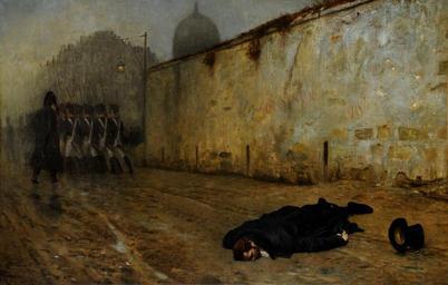 | Keywords: The Execution of Marshal Ney.jpg en The Execution of Marshal Ney by Jean Leon Gerome oil on canvas Michel Ney 1st Duc d'Elchingen 1st Prince de la Moskowa 10 January 1769 “ 7 December 1815 popularly known as Marshal Ney was a French soldier and military commander during the French Revolutionary Wars and the Napoleonic Wars He was one of the original 18 Marshals of France created by Napoleon He was known as Le Rougeaud red faced or ruddy by his men and nicknamed le Brave des Braves the bravest of the brave by Napoleon Sheffield Galleries and Museums Trust UK 1868 Militärhistoria 4/2015 Jean Leon Gerome other versions Text removed with GIMP PD-Art Uploaded with UploadWizard History paintings by Jean-LĂ©on GĂ©rĂ´me Michel Ney Executions in art |