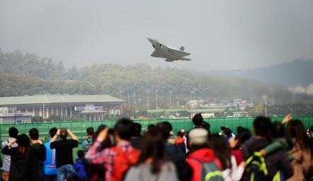 Keywords: F-22 Raptor demonstrates unique flight capabilities thousands Korean civilians 2015 Seoul International Aerospace Defense Exhibition