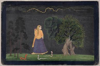 | Keywords: The Family of Nainsukh - Heroine Rushing to Her Lover (Abhisarika Nayika ) - Google Art Project.jpg The 551308 Family of Nainsukh /collection/museum-of-fine-arts-boston/artwork/heroine-rushing-to-her-lover-abhisarika-nayika-the-family-of-nainsukh/534320/ The Family of Nainsukh Attributed to /artist/the-family-of-nainsukh/4128397/ 4128397 /collection/museum-of-fine-arts-boston/ Museum of Fine Arts Boston 509114 http //www mfa org/ 12/17/2011 11 00 22 AM /collection/museum-of-fine-arts-boston/artwork/heroine-rushing-to-her-lover-abhisarika-nayika-the-family-of-nainsukh/534320/ 1780 late 18th century Kangra style Punjab Hills Northern India Opaque watercolor and gold on paper 195 534320 False 1800 late 18th century 3/24/2012 3 09 43 AM 17 2612 http //www mfa org/collections/object/heroine-rushing-to-her-lover-abhisarika-nayika-149053 Ross-Coomaraswamy Collection Museum of Fine Arts Boston All Rights Reserved painting 1780 1810 w295 x h195 mm late 18th century False 1 51032448377581 Object heroine-rushing-to-her-lover-abhisarika-nayika-the-family-of-nainsukh Heroine Rushing to Her Lover Abhisarika Nayika h 295 City _state _country Kangra style Punjab Hills Northern India Reverse at center in Devanagari Leaden and lowering and heavy-laden clouds -- dight in a robe of black -- dark collyrium is seen upon thine eyes All thy limbs o'erspread with one dark hue -- thy bodice deeply dyed in dark cova Lovely the jet-black silken robe a nd all they gear becoming -- the black braid beauteous on they back let fall At such times in such a guise when you meet your Krishna all your efforts will bear fruit Opaque watercolor and gold on paper special url_id qgGV_J7YgKTe9A PD-old-100 Google Art Project works by Nainsukh Family Nainsukh Family Ashta Nayika Drawings in the Museum of Fine Arts Boston |