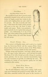 | Keywords: The field and garden vegetables of America (Page 107) (6002091059).jpg THE TURNIP <br> 107 <br> Cow-Horn <br> Long Early White Vertus Vil <br> Root produced much above ground nearly <br> cylindrical rounded at the end ten or twelve <br> inches in length nearly three inches in dia- <br> meter and weighing from one and a half to <br> two pounds The skin is smooth and shin- <br> ing ” white below the surface of the ground <br> and green at the top ; the flesh is white <br> tender and sugary Early very productive <br> and remarkable for its regular form and good <br> quality As a field-turnip it is one of the <br> best ; and when pulled young good for table <br> use During winter the roots often become <br> dry and spongy <br> Dales's Hybrid Laiv <br> Cow-horn Turnip <br> This variety is of English origin and is said to be a hybrid <br> from the Green-top Swede and the common White Globe <br> Its prevailing traits are however those of the White Globe ; <br> inasmuch as its roots are similar in form and texture <br> Foliage strong and luxuriant ; root large oblong pale yel- <br> low ; the upper surface light green ; neck and tap-root small <br> The' form of the bulb though generally oblong is sometimes <br> nearly globular ; but its more material characteristics large <br> size and luxuriance of growth are uniformly the same Its <br> reputation as a turnip of very superior quality has not been <br> sustained in this country <br> Early Flat Dutch <br> Early White Dutch White Dutch <br> An old and well-known early garden variety ; bulb round <br> very much flattened and produced mostly within the earth ; <br> skin white somewhat washed with green at the insertion of 29062445 92326 42073 Page 107 Text http //www biodiversitylibrary org/page/29062445 1863 10 5962/bhl title 42073 Burr Fearing Biodiversity Heritage Library The field and garden vegetables of America United States Varieties Vegetable gardening Vegetables Library Congress bhl page 29062445 dc identifier http //biodiversitylibrary org/page/29062445 united states Information field Flickr posted date ISOdate 2011-08-02 CC-BY-2 0 BioDivLibrary https //flickr com/photos/61021753 N02/6002091059 2015-09-10 21 02 50 cc-by-2 0 PD-old-70-1923 The field and garden vegetables of America Photos uploaded from Flickr by Fæ using a script |