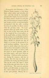 | Keywords: The field and garden vegetables of America (Page 33) (6002635390).jpg CHINESE POTATO OR JAPANESE YAM <br> 33 <br> Propagation and Cultivation The <br> Chinese Potato requires a very deep <br> light rather sandy and tolerably rich <br> soil ; and this should be thoroughly <br> stirred to the depth of at least two feet <br> No fresh manure should be used but <br> fine well-decomposed compost applied <br> and deeply as well as very thoroughly <br> incorporated with the soil ; avoiding <br> however if possible its direct contact <br> with the growing roots It is pro- <br> pagated either by small roots ; by the <br> top or neck of the large roots cut off <br> to the length of five or six inches ; or <br> by the small bulbs or tubers which the <br> plants produce in considerable numbers <br> on the stem in the axils of the leaves <br> These should be planted the last of <br> April or as soon as the ground is in <br> good working condition Lay out the <br> land in raised ridges two feet and a <br> half or three feet asunder ; and on the <br> summit set the bulbs or tubers with <br> the point or shoot upwards eight or <br> ten inches apart ; and cover about an <br> inch deep Cultivate in the usual man- <br> ner during the summer; and late in <br> autumn after the tops are dead and <br> just before the closing-up of the ground <br> take up the roots dry them a short <br> time in the sun and store them in the <br> cellar for use The roots are perfectly <br> hardy and will sustain no injury from <br> the coldest winter if left unprotected <br> in the open ground During the se- <br> Chinese Potato or Japanese Ys 29062333 92326 42073 Page 33 Text http //www biodiversitylibrary org/page/29062333 1863 10 5962/bhl title 42073 Burr Fearing Biodiversity Heritage Library The field and garden vegetables of America United States Varieties Vegetable gardening Vegetables Library Congress bhl page 29062333 dc identifier http //biodiversitylibrary org/page/29062333 united states Information field Flickr posted date ISOdate 2011-08-02 CC-BY-2 0 BioDivLibrary https //flickr com/photos/61021753 N02/6002635390 2015-09-10 20 55 27 cc-by-2 0 PD-old-70-1923 The field and garden vegetables of America Photos uploaded from Flickr by FĂŚ using a script |