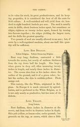 | Keywords: The field and garden vegetables of America (Page 27) (6002087331).jpg THE CARROT <br> 27 <br> to its value for stock its great productiveness and its keep- <br> ing properties it is considered the best of all the sorts for <br> field culture A well-enriched soil will yield from six hun- <br> dred to eight hundred bushels per acre The seed is usually- <br> sown in drills about fourteen inches apart but sometimes on <br> ridges eighteen or twenty inches apart formed by turning <br> two furrows together ; the ridges yielding the largest roots <br> and the drills the greatest quantity <br> Two pounds of seed are usually allowed to an acre ; but if <br> sown by a well-regulated machine about one-half this quan- <br> tity will be sufficient <br> Long Red Belgian <br> Yellow Belgian Yellow Green-top Belgian <br> Root very long fusiform contracted a little <br> towards the crown but nearly of uniform thickness <br> from the top down half the length Size large ; <br> when grown in deep soil often measuring twenty <br> inches in length and nearly three inches in diame- <br> ter The crown rises four or five inches above the <br> surface of the ground and is of a green color ; be- <br> low the surface the skin is reddish-yellow Flesh <br> orange-red <br> This variety like the White originated in Bel- <br> gium In Europe it is much esteemed by agricul- <br> turists and is preferred to the White Belgian as it <br> is not only nearly as productive but has none of its <br> defects <br> Long Yellow <br> Long Lemon <br> Root fusiform three inches in diameter at the <br> crown and from twelve to fourteen inches in depth <br> Skin pale yellow or lemon-color under ground ; but <br> greenish on the top or crown which rises a little <br> Lone Red Bel- <br> gian Carrot 29062327 92326 42073 Page 27 Text http //www biodiversitylibrary org/page/29062327 1863 10 5962/bhl title 42073 Burr Fearing Biodiversity Heritage Library The field and garden vegetables of America United States Varieties Vegetable gardening Vegetables Library Congress bhl page 29062327 dc identifier http //biodiversitylibrary org/page/29062327 united states Information field Flickr posted date ISOdate 2011-08-02 CC-BY-2 0 BioDivLibrary https //flickr com/photos/61021753 N02/6002087331 2015-09-10 20 55 35 cc-by-2 0 PD-old-70-1923 The field and garden vegetables of America Photos uploaded from Flickr by Fæ using a script |