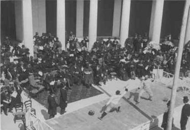 Keywords: The final sword match 1896 Summer Olympics.JPG Foil match during 1896 Summer Olympics http //olympic-museum de/various/1896_2 html 1896 Creator Albert Meyer PD-old Fencing at the 1896 Summer Olympics Albert Meyer