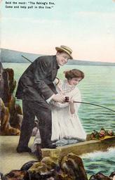 Keywords: vintagepostcard travel couple romance love fishing